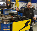 The EvBend concept is very well liked because of its lower cost compared with buying an automatic bending machine, and for its intrinsically simple and safe mode of operation. With the launch of the EvBend 2000, Unison has found a way to extend this formula to larger tubing sizes, without sacrificing either safety or simplicity. Operator safety continues to be assured by the requirement for human force on the bend arm to engage the power assistance, plus a form of 'dead man's switch', which provides a fail-safe mechanism that instantly removes the power assistance if the operator lets go or relaxes the grip on the handle.